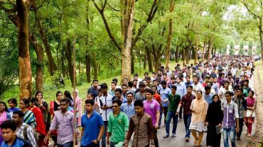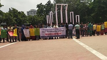 জাবিতে ধর্ষণের হুমকি, ছাত্রলীগ নেতাদের শাস্তির দাবিতে মানববন্ধন