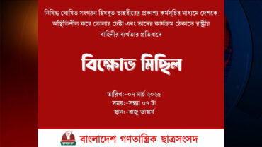 নিষিদ্ধ হিযবুত তাহ্রীরের কর্মসূচির প্রতিবাদে বিক্ষোভ মিছিল করবে গণতান্ত্রিক ছাত্রসংসদ
