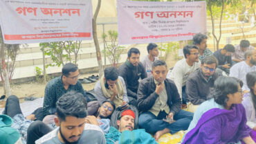 সেনাবাহিনীর কাছে কাজ হস্তান্তর ও অস্থায়ী আবাসনের দাবিতে অনশনে জবি শিক্ষার্থীরা