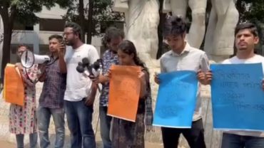 ঢাবির ক্যানটিনগুলোয় খাবারের দাম বৃদ্ধির প্রতিবাদে মানববন্ধন
