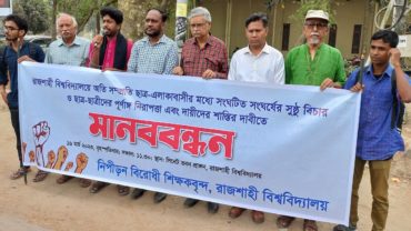 রাবিতে শিক্ষার্থীদের পূর্ণাঙ্গ নিরাপত্তার দাবিতে শিক্ষকদের মানববন্ধন
