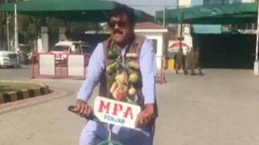 যে কারণে আলু-টমেটোর মালা গলায় সাইকেলে সংসদে পাক এমপি
