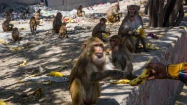 খাদ্যাভাবে থাকা বানরদের পাশে ফল ব্যবসায়ী