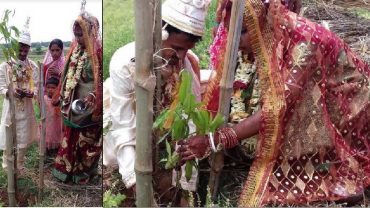 রাস্তার দুপাশে গাছ লাগিয়ে বিয়ের উৎসব