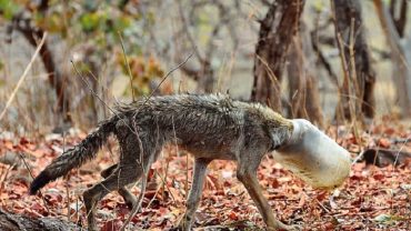 প্লাস্টিকের বোতল কেটে বাঁচানো হলো নেকড়েকে