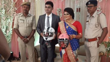 খালি মাথায় বাইক চালায় বর, বিয়েতে হেলমেট উপহার পুলিশের