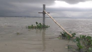 সিরাজগঞ্জে যমুনা নদীর পানি বিপৎসীমার উপর দিয়ে প্রবাহিত