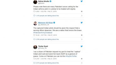 আটক ভারতীয় পাইলটদের সম্মানের সাথে ফেরত পাঠানোর আহ্বান পাকিস্তানিদের