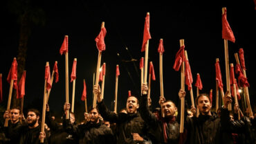 গ্রীসে ঐতিহাসিক ছাত্র আন্দোলনের বর্ষপূর্তিতে ফিলিস্তিনি পতাকা বহন করে শোক মিছিল