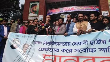 বেসরকারি বিশ্ববিদ্যালয় শিক্ষার্থী মিজান হত্যায় জড়িতদের গ্রেফতার ও শাস্তির দাবিতে মানববন্ধন