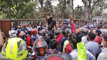 যাত্রী পরিবহনে নিষেধাজ্ঞার প্রতিবাদে মোটরসাইকেল চালকদের বিক্ষোভ