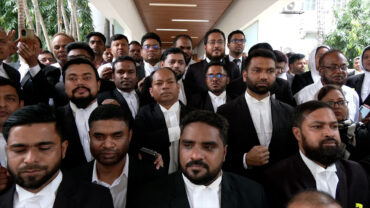 সাবেক প্রধান বিচারপতি খায়রুল হকের গ্রেফতারের দাবিতে আইনজীবীদের বিক্ষোভ
