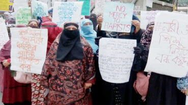 নারী ও কন্যা শিশু নির্যাতন বন্ধসহ ৬ দফা দাবিতে মানববন্ধন