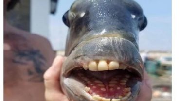 মাছের মুখে অবিকল মানুষের মতোই সারি সারি দাঁত