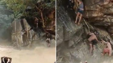 ভয়ঙ্কর ঝরনা থেকে মা ও শিশুকে বাঁচালো বনকর্মীরা (ভিডিও)