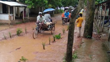 সড়ক পাকা না হওয়ায় ধানের চারা রোপণ!