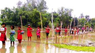 বিপজ্জনক সাঁকো পেরিয়ে স্কুলে যাচ্ছে শিশুরা
