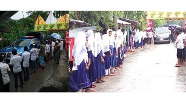 মন্ত্রীকে শুভেচ্ছা জানাতে বৃষ্টিতে দাঁড়িয়ে থাকতে হলো স্কুল শিক্ষার্থীদের