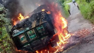 সৈয়দপুরে সড়ক দুর্ঘটনায় কিশোর নিহত, বাসে আগুন