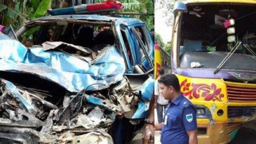 বাস ও পুলিশ পিকআপের মুখোমুখি সংঘর্ষ, আহত ১২