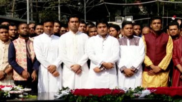 বঙ্গবন্ধুর প্রতিকৃতিতে ছাত্রলীগের নতুন কমিটির শ্রদ্ধা নিবেদন