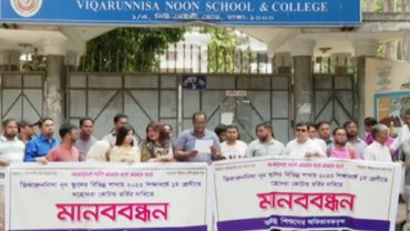 ভিকারুননিসায় সহোদর কোটায় ভর্তির দাবিতে অভিভাবকদের মানববন্ধন
