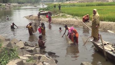 পঞ্চগড়ের করতোয়ায় আকস্মিক মরছে মাছ, ধরতে মানুষের ঢল