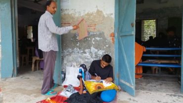 পরীক্ষা দিচ্ছে সড়ক দুর্ঘটনায় আহত ছেলে, বাতাস করছেন বাবা